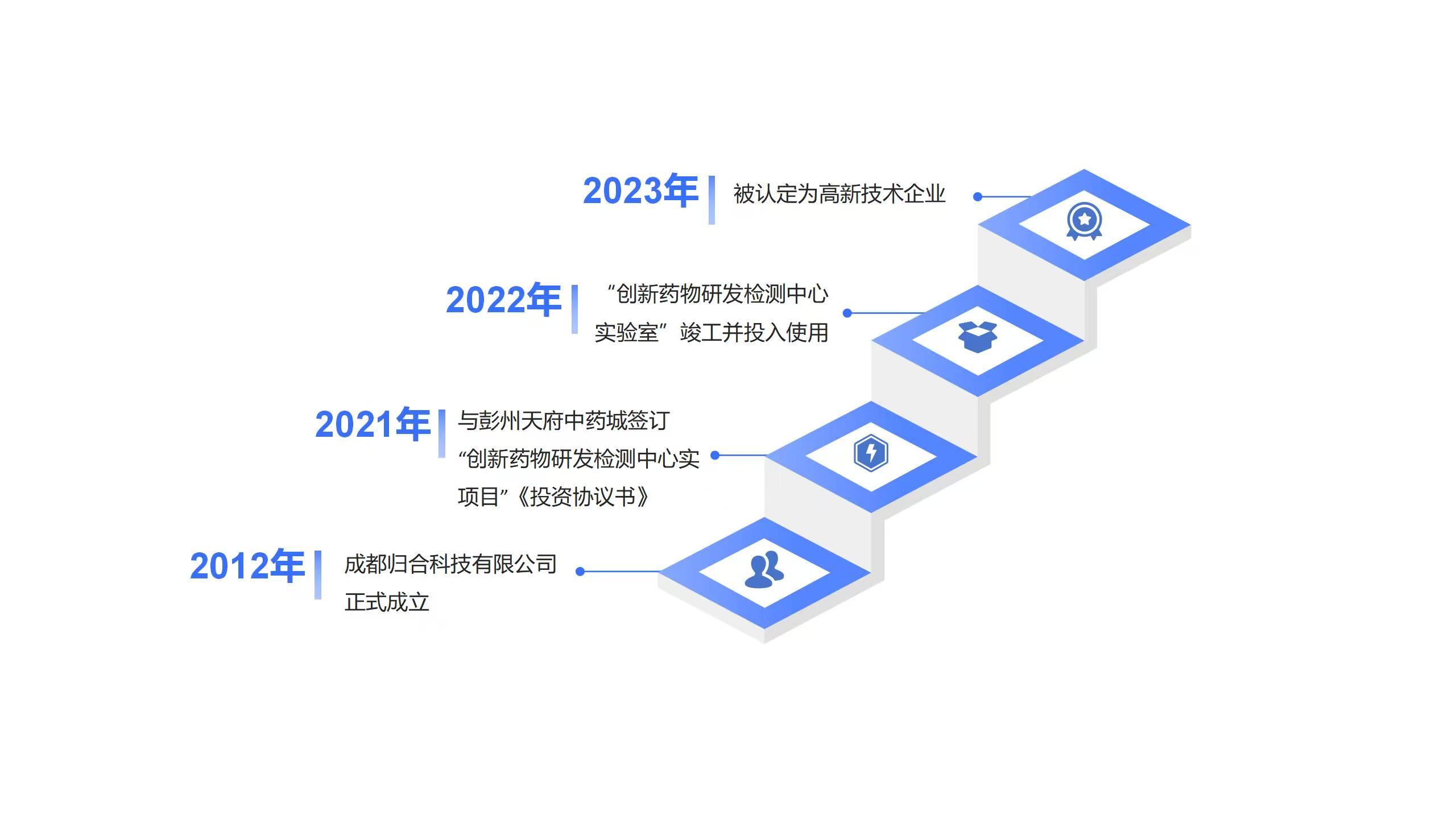成都归合科技有限公司成立于2012年,是一家专门从事中成药制剂、化学原料药、化学药制剂研发的药品研发型科技企业,以四川省彭州市现有生物医药产业及布局为基础,天府中药城为载体,结合彭州天府中药城的区域优势,打造集CMC药学、临床服务研究平台、MAH持有人平台为一体的国际化高端医药科研及成果转化综合服务平台。